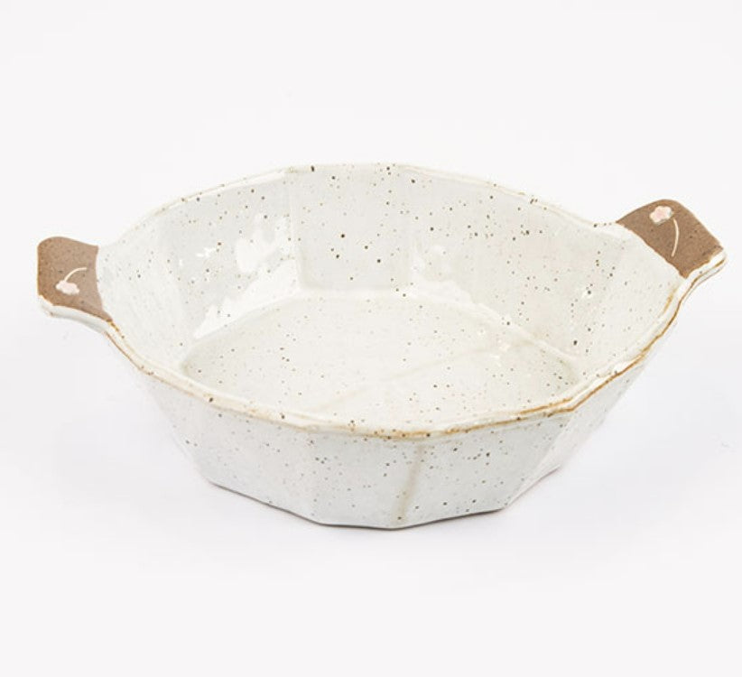 손으로 정성 들여 각을 낸 자연스러운 디자인의 15각 찜그릇입니다. 아기 자기한 꽃장식이 있는 손잡이는 안정감 있게 뜨거운 요리를 담아내는데 도움이 됩니다. 찜요리, 찌개, 국, 과일 등 다양한 음식을 멋스럽게 담아내보세요.